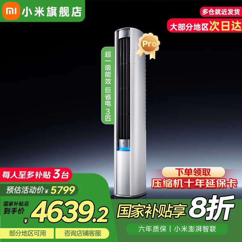 小米空调巨省电Pro 3匹柜机 京东优惠价4079元