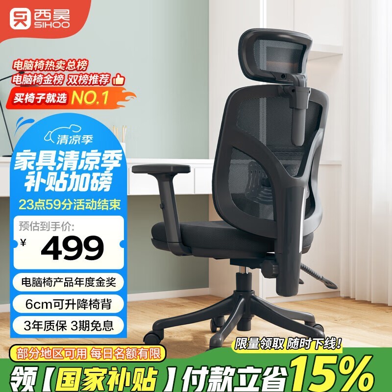 西昊M56人体工学电脑椅京东促销低至399元