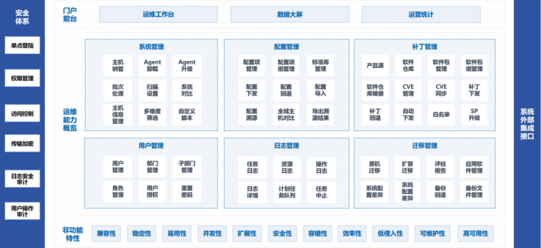 银河麒麟服务器迁移运维平台基于国产银河麒麟高级服务器操作系统开发,能够通过直观清晰易理解的 Web 界面,帮助系统管理员在大规模、集群式服务器主机管理场景中完成高效运维管理工作,打造配置管理、漏洞修复、SP 升级、监控告警、迁移管理等多种核心运维场景解决方案。