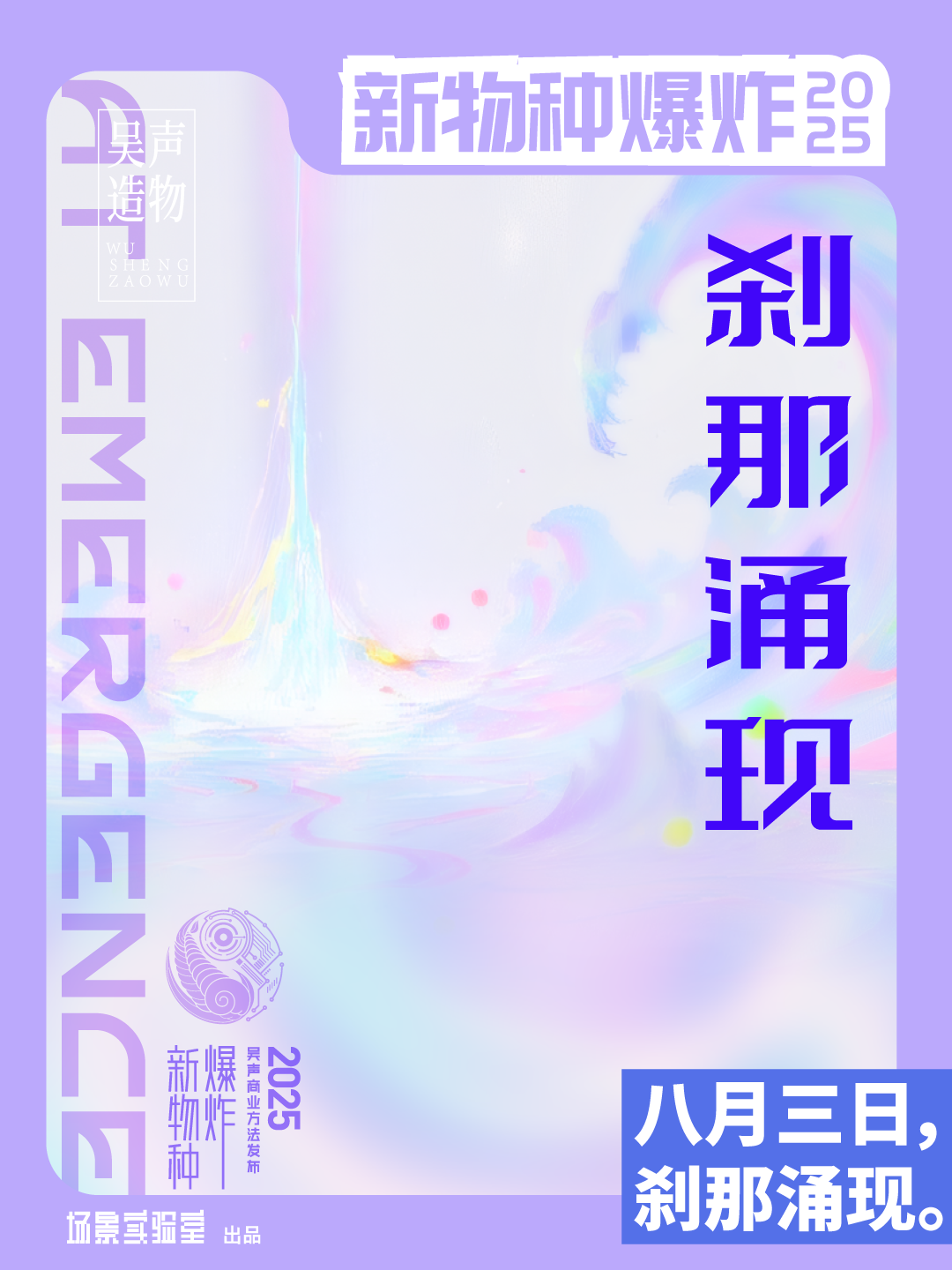 研究新场景,定义新物种。十个字,锚定场景实验室十年轨迹,也是新物种爆炸的价值原点。近日,新物种爆炸·吴声商业方法发布2025官宣定期8月3日。据悉,今年的主题为刹那涌现。吴声造物推出刹那涌现预告特辑,梳理新物种爆炸2025的叙事立意,分享场景实验室创始人、场景方法论提出者吴声在2025的三个AI场景思考。立足场景研究的商业方法,激荡AI周期的创新价值。