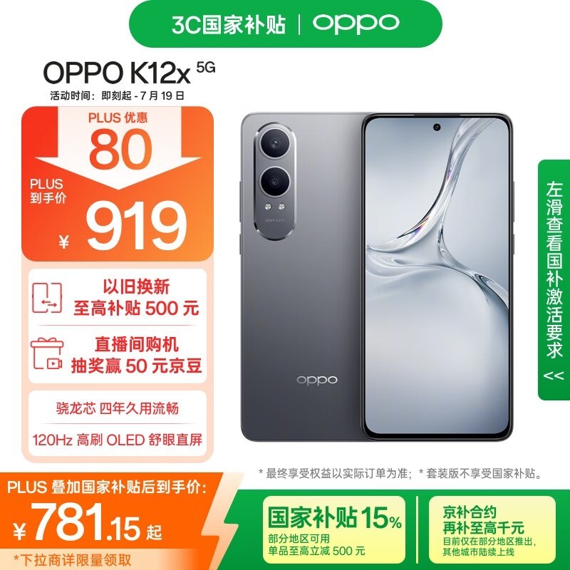 OPPO K12x 5G手机限时特惠781元