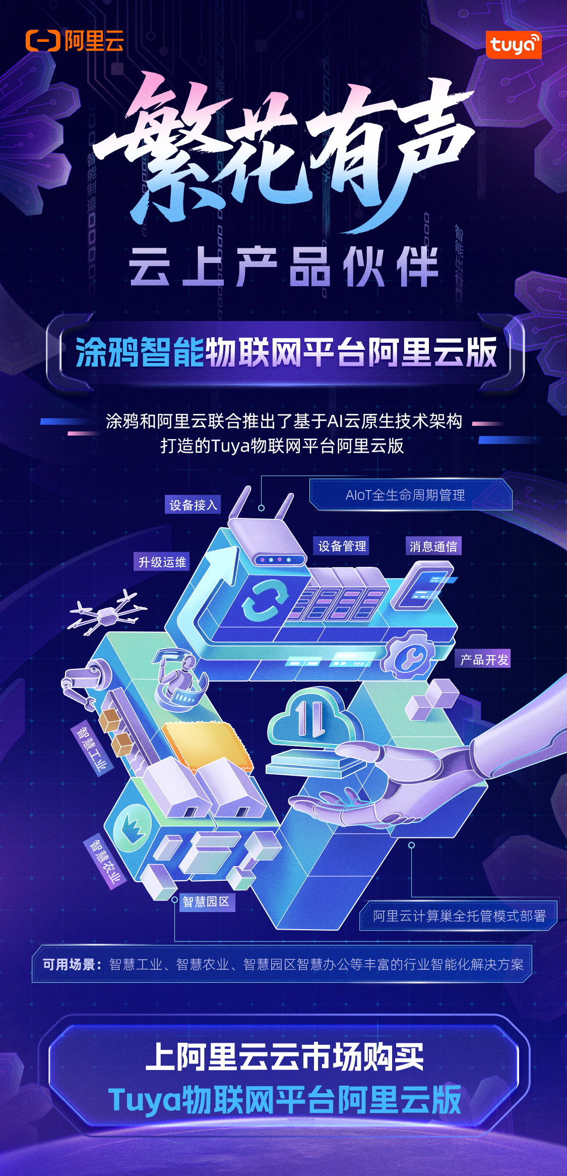 阿里云和涂鸦智能携手11年,始终围绕"技术共研、生态共享"理念,构建起覆盖设备接入、云端协同、行业场景的全栈式解决方案。