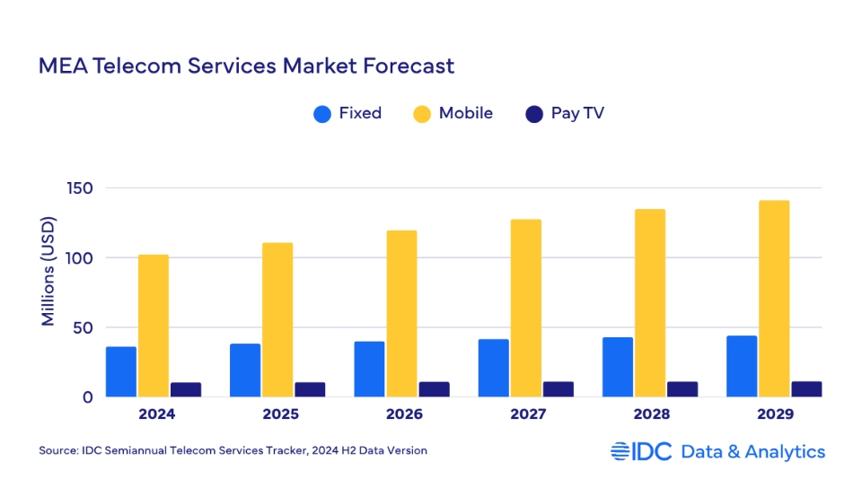 C114讯 北京时间7月18日消息(岳明)根据IDC《全球电信服务半年度追踪报告》,2024年中东和非洲地区(MEA)电信及付费电视服务支出达到1490亿美元,同比增长7.7%,而全球增长率仅为2.2%。IDC预计该地区电信及付费电视服务支出增长势头将持续,2025年同比增长率将达7.3%,总额增至1599亿美元。不过,IDC这一数据发布时,该地区持续的地缘政治动态可能产生的影响尚未得到充分评估。