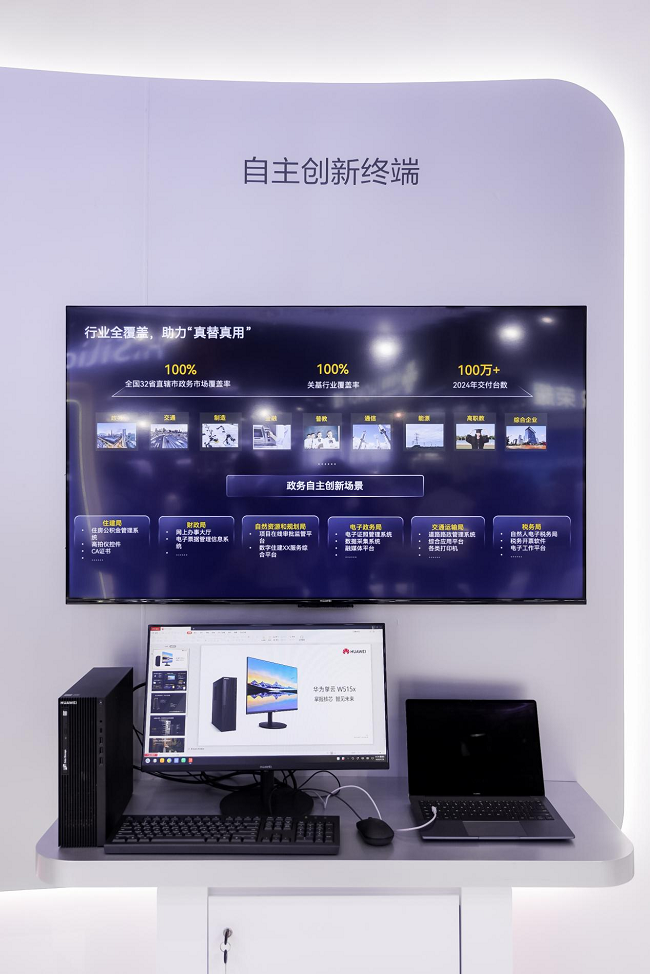 除了针对千行百业的场景化方案,华为擎云还在大会期间展示了丰富的自主创新终端产品。华为擎云布局自主创新领域多年,已经推出涵盖笔记本、台式机、平板、打印机等多品类的自主创新终端,为政企用户提供超强性能、流畅体验、安全可靠、生态丰富的自主创新产品组合。大会期间展示的华为擎云 L420x在性能、屏幕、续航、体验、安全五大维度全面提升,为政企客户提供快不止一点、标准之上更安全的生产力体验。