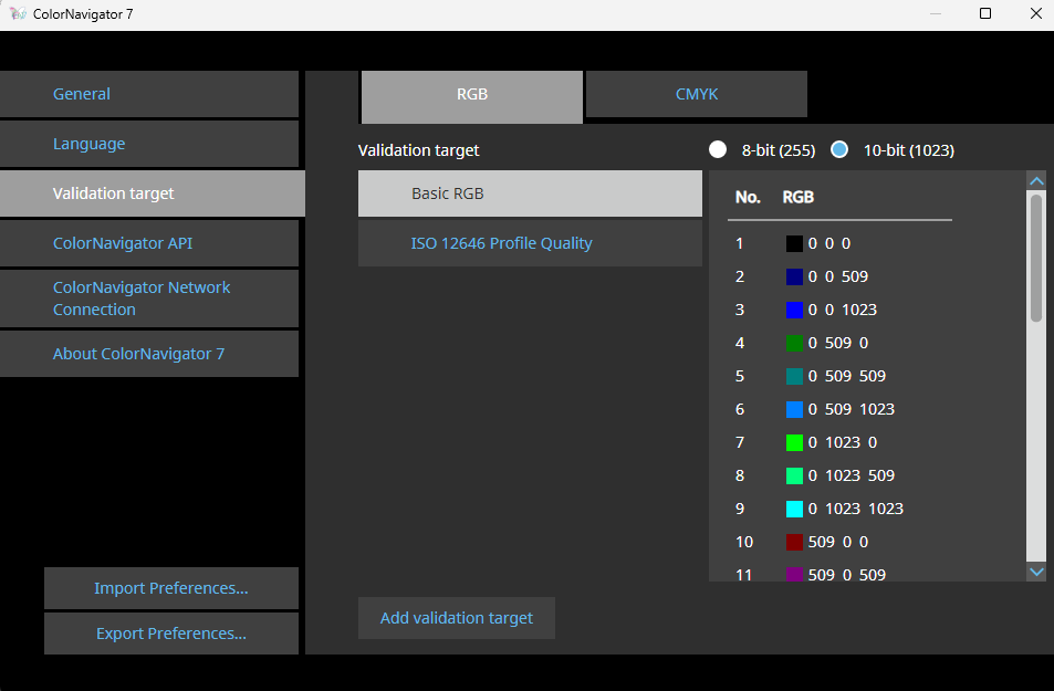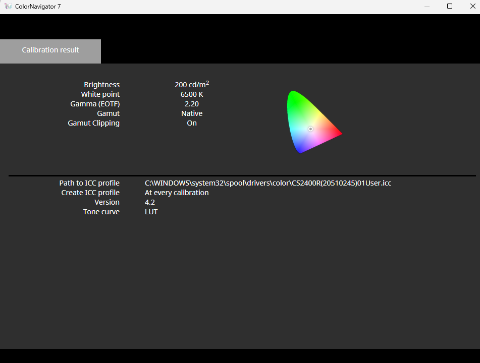 校色完成后,显示器的10bit色彩模式也顺利开启。可以在CN软件中看到目标对比数据。