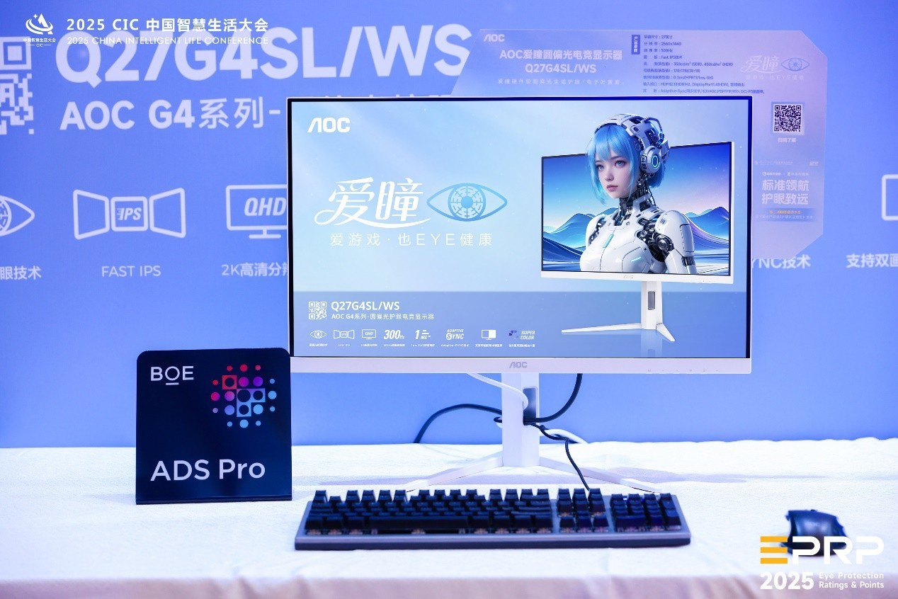 《显示产品金E护眼认证规范》现场权发布活动照片在首批获认证产品名单中,AOC爱瞳圆偏光电竞显示器Q27G4SL/WS凭借卓越的技术实力与出色的护眼表现,荣膺“2025显示设备金E护眼认证”。该产品采用京东方BOE圆偏光技术,能够模拟自然光的特性,使人眼不同区域均匀接收光线,有效减轻对晶状体和视网膜的定向刺激,为用户提供接近自然光的健康护眼体验。同时,融合硬件级低蓝光和DC不频闪技术,从源头减少有害蓝光辐射与屏幕闪烁干扰,三重护眼方案协同发力,全面响应“护眼优先”理念,也精准契合“赛事级体验+医学级护眼”双重标准,堪称护眼显示设备标准落地的技术范例。