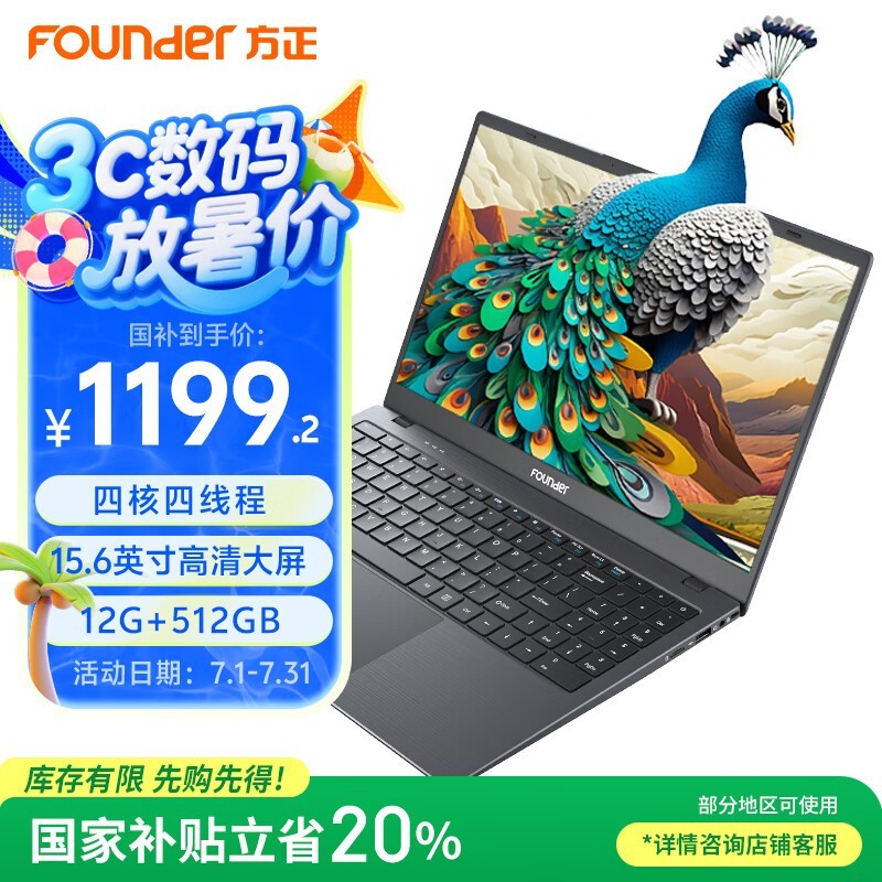 方正2024笔记本电脑京东优惠价1113元