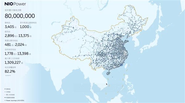 截至7月19日,蔚来能源已在全国范围建设8,079座充换电站,其中3,405座换电站、4,674座充电站,建成9纵11横16大城市群高速换电网络,布局1000座高速公路换电站,建成全国主要城市间高速公路换电网络,连通全国550个城市。
