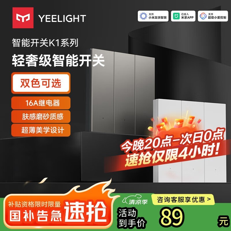 易来Yeelight智能开关K1限时优惠价75.23元
