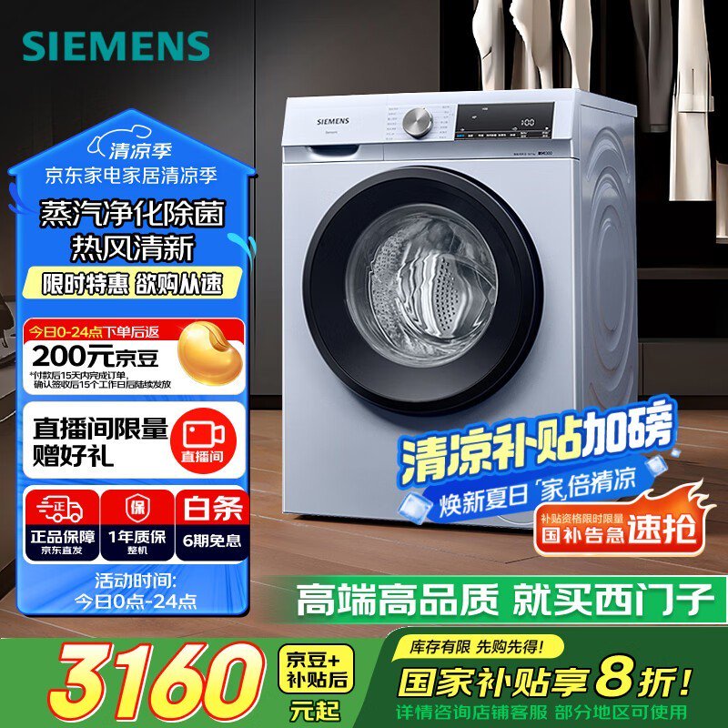 西门子洗烘一体机10kg银色直降800元