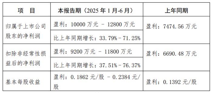 超声电子预计2025年半年度实现归母净利润为盈利10000 万元 - 12800 万元,比上年同期增长33.79% - 71.25%。预计2025年半年度实现扣非净利润为盈利9200 万元 - 11800 万元,比上年同期增长37.51% - 76.37%。