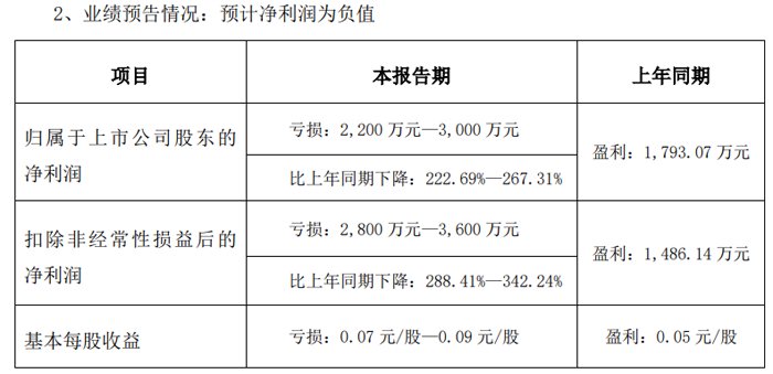 深圳同兴达科技股份有限公司发布2025 年半年度业绩预告。预计 2025 年半年度实现归母净利润为亏损2,200 万元—3,000 万元,比上年同期下降222.69%—267.31%。预计扣非净利润为亏损2,800 万元—3,600 万元,比上年同期下降288.41%—342.24%。