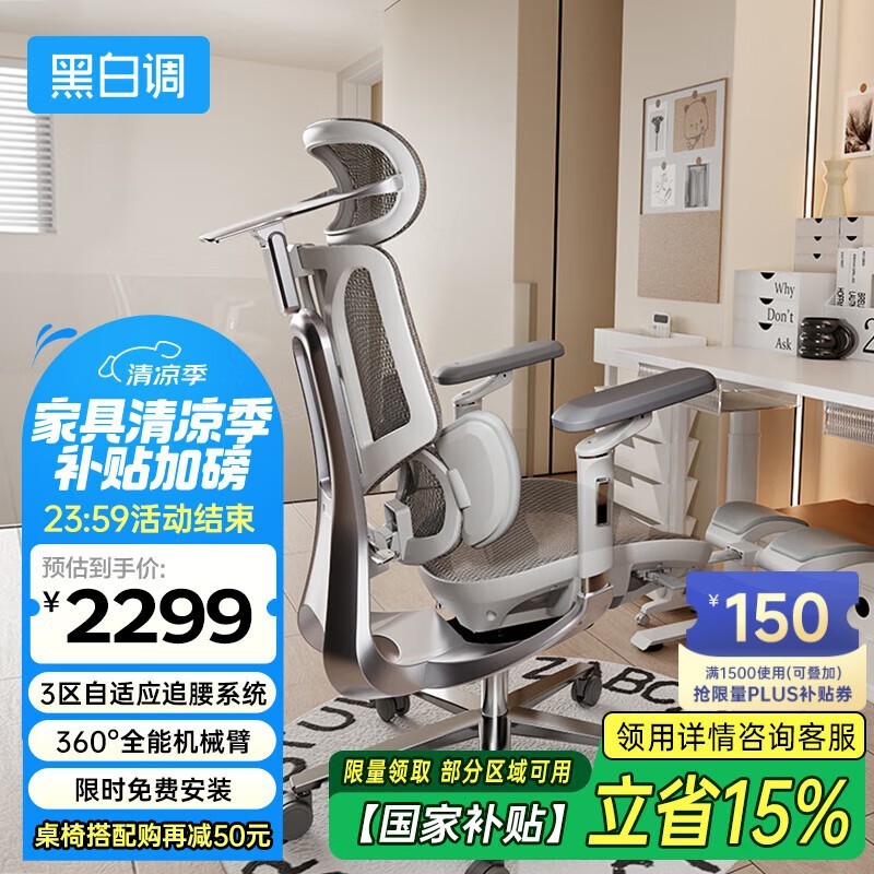 黑白调E3 Pro人体工学椅限时特惠1791元