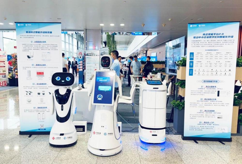 合作交流区展岛俨然成为联通商企创新产品的最佳秀场,多款由联通数科打造的雁飞新品亮相登场:雁飞AI配送机器人穿梭于展区间,流畅完成外卖、文件等配送任务,其激光导航与多传感器融合技术,为酒店、写字楼提供了高效的运营新选择;雁飞AI客流摄像机化身“智慧之眼”,实时统计大会人数、分析区域热度、描绘到场嘉宾画像,精准赋能商家决策;雁飞电子桌牌遍布各展岛,其双面电子墨水屏高效更新会议与营销信息,成为推动绿色无纸化办公、提升企业形象的智慧名片;令人瞩目的雁飞AI服务机器人也首次亮相,提供智能引导与互动服务,拓展了智能服务边界。