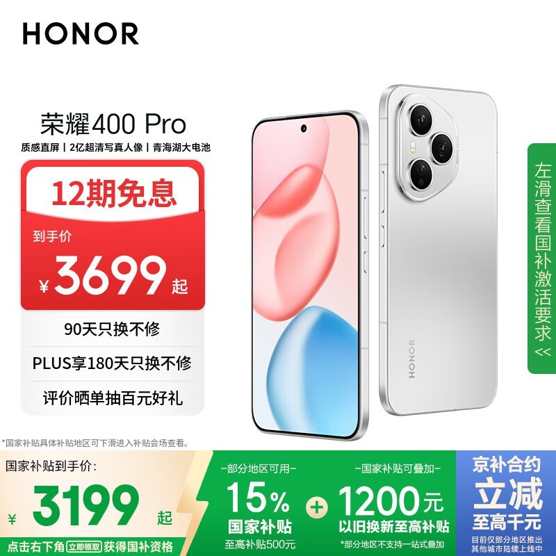 荣耀HONOR 400 Pro手机12GB+512GB京东优惠价3199元