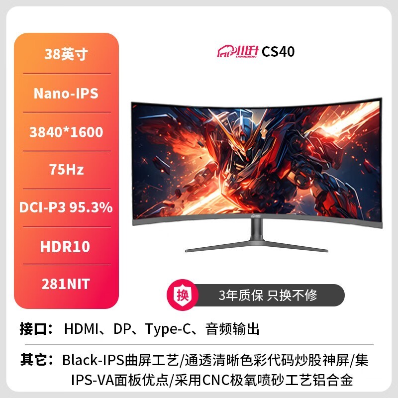 川升34英寸带鱼屏促销,到手价1134元