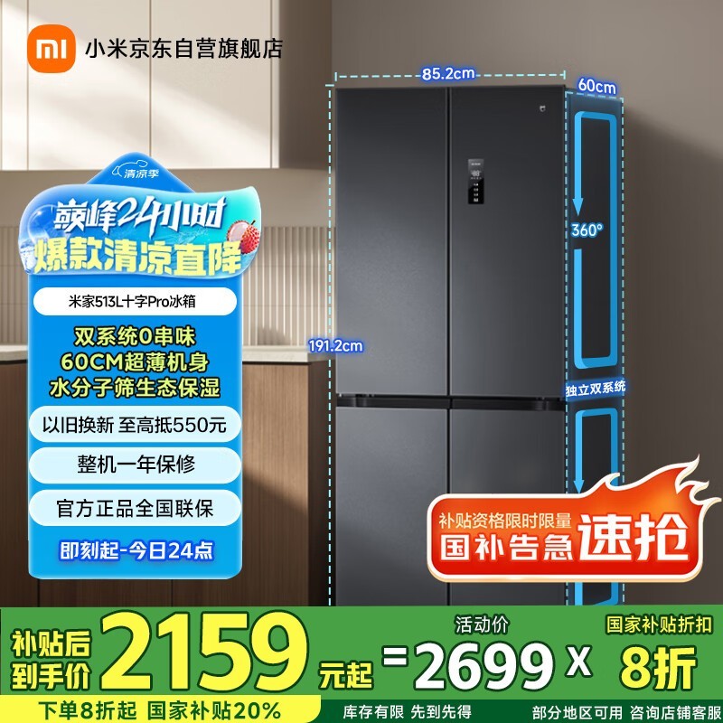 米家MIJIA BCD - 513WTMSA冰箱京东优惠价2159元