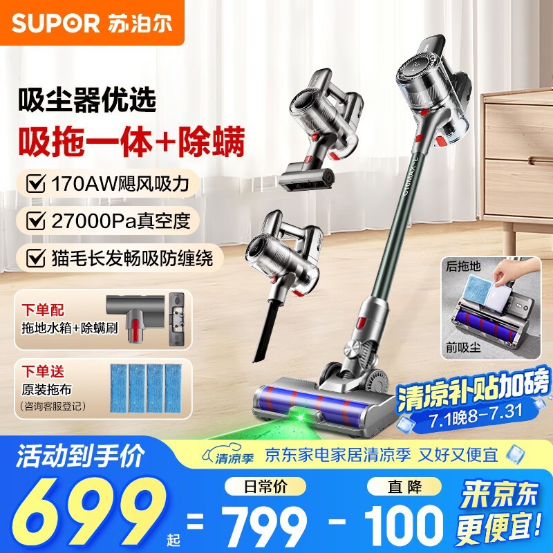 苏泊尔27kpa手持无线吸尘器京东优惠价594元