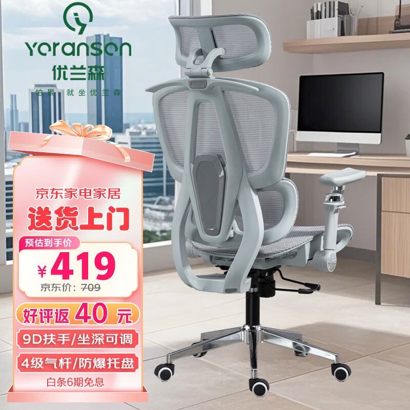 优兰森T606云灰人体工学椅限时特惠329元