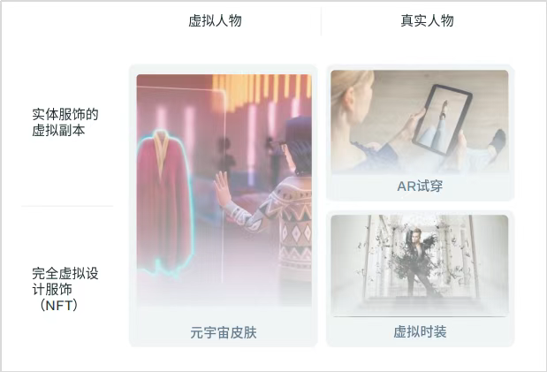 虚拟时尚:虚拟时尚指的是以数字资产的形式在线售卖的服装,设计师凭借现代科技的方式将服装全面数字化,创造出为网络时代设计的无接触式虚拟服装,并可以依据消费者需求进行定制,满足人们对时尚新颖,独一无二以及环保低碳的双重着装需求。82%的重点市场消费者表示当地的女性服装时尚正在包含更多的数字化元素(包含元宇宙、NFT、虚拟时尚、AR/VR)