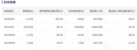 2024年年报显示,全年营业收入2406.40亿元,同比下滑33.20%;归属于上市公司净利润亏损155.52亿元,同比暴跌62.75%。