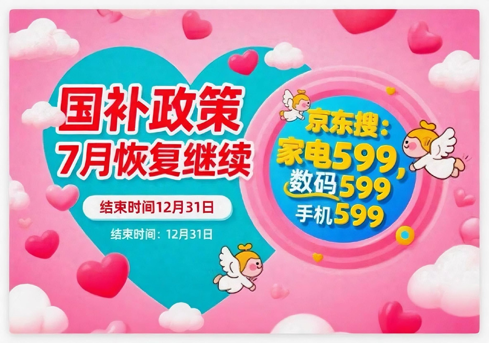 家电家居类:京东 APP 搜索「家电599」,领最高 2000 元补贴(一级能效立减 2000 元);