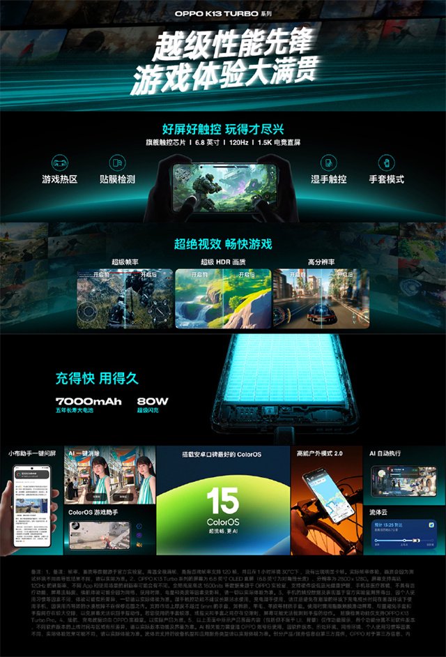 要说现在手机面临的最大问题并不是性能不足,而是与日俱增的性能、更大容量的电池与有限空间下如何提升散热效率的博弈,OPPO最新发布的K13 Turbo Pro就出手解决了这一问题,其采用了一个主动散热的方式,来强化散热,并且有着超大VC加快热量的传导,在保证性能和散热的情况下,机身还塞入了7000mAh的大电池,为用户带来了性能越级体验。