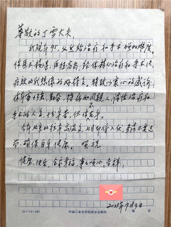 “疗效比我想像的好得多”葛大爷在感谢信中用简单朴实的话语,写出了真实的感受,这不仅是对丁雪主任精湛医术的认可,更是对北京爱尔英智眼科医院始终坚守 “以患者为中心” 理念的生动诠释。十年前的信任开启光明之路,十年后的守护续写清晰篇章,这场跨越时光的医患情,不仅让鲐背老人重享 “睛彩”生活,更彰显着医护人员用技术与责任守护 “视界” 的初心。