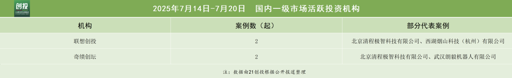 从机构投资活跃度来看,联想创投和奇绩创坛较为活跃,分别完成2笔和2笔融资,主要聚集在科技与制造领域。