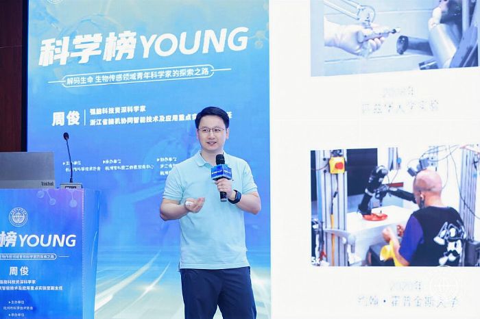 “当大脑的神经信号能被机器‘读懂’,当生物传感技术跨越实验室与生活的边界,人类与科技的对话将迎来怎样的新可能?”7月18日,“科学榜YOUNG”青年Talk show第13期活动在杭州市科技交流馆拉开帷幕。这场以“解码生命 生物传感领域青年科学家的探索之路”为主题的活动,邀请到生物传感与非侵入式脑机接口领域青年领军者、强脑科技资深科学家周俊博士,与五十余位青年科技工作者、在杭高校学生、创业者及学者深度对话,揭开“大脑与机器对话”的神秘面纱,展现前沿科技从原理探索到产业落地的完整探索链条。