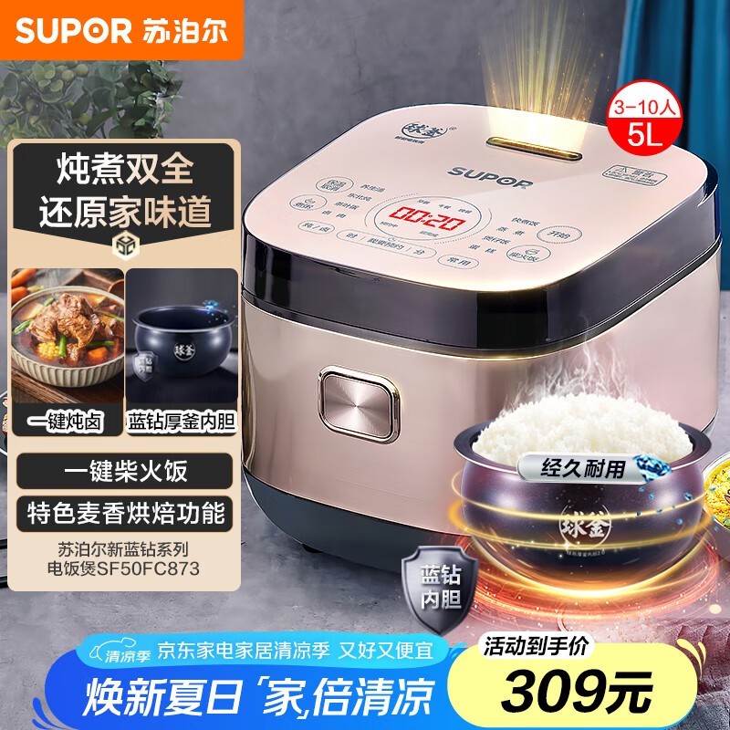 苏泊尔5L电饭煲香槟金限时特惠
