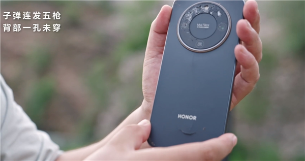 甚至在气步枪连续射击5枪后,荣耀X70也没有被射穿。