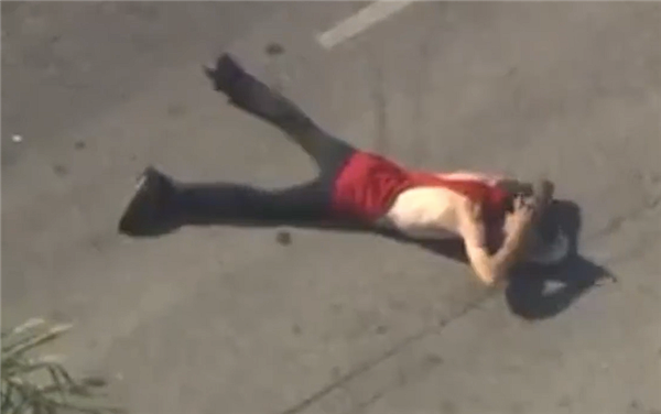嫌疑人眼见逃跑无望,这才双手抱头从车里走出并趴在了地上,整个事件中无人受伤。