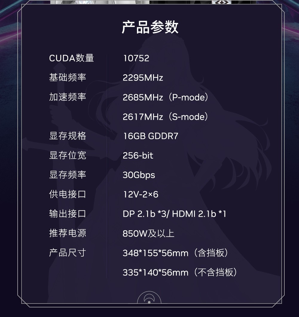详情参数如下所示,在开启性能模式BIOS下,频率可来到2685MHz,推荐电源瓦数为850W。