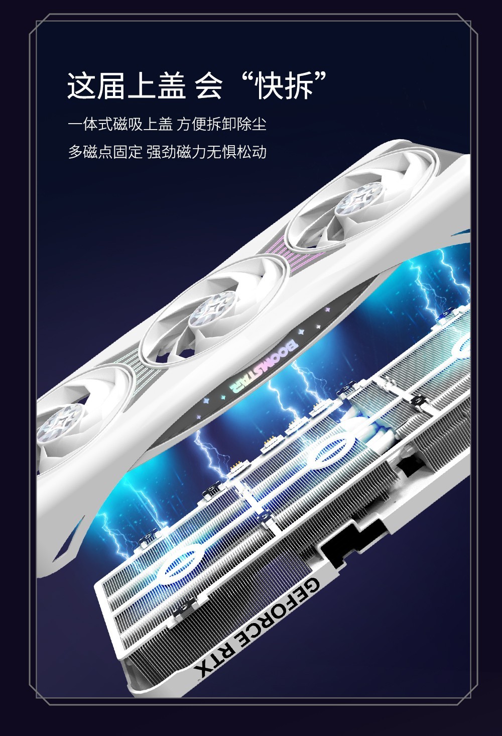 同样的,影驰RTX5080 星曜NOXOC也有着磁吸上盖,可以轻易拆除上盖并清理,非常方便。