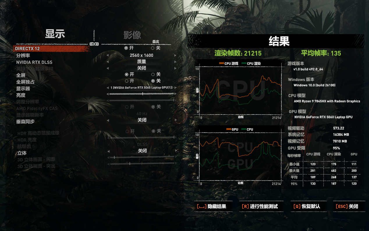 《古墓丽影:暗影》在DLSS质量、最高画质下的帧数为平均135帧,流畅度同样没有问题。