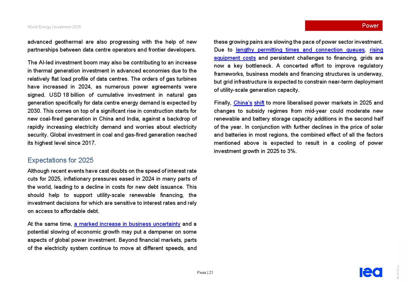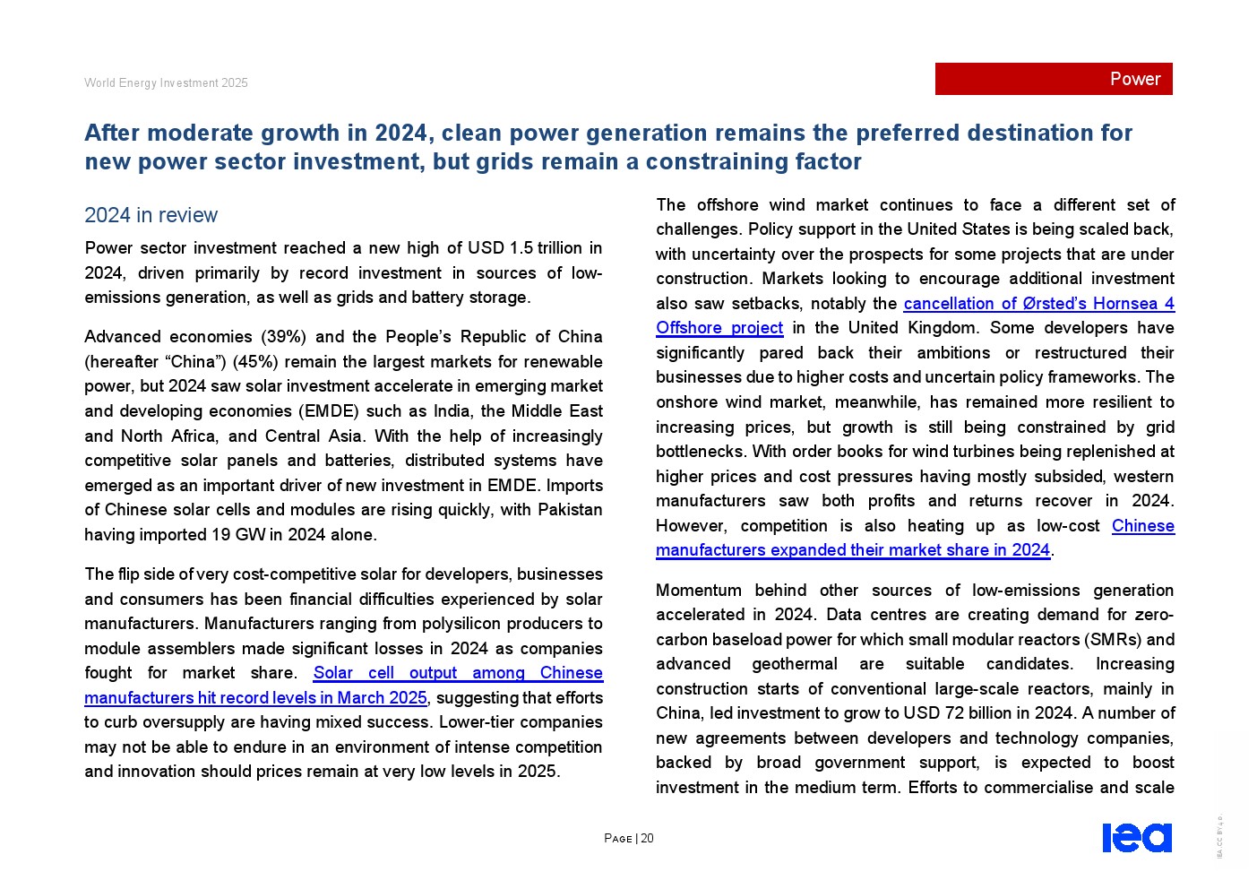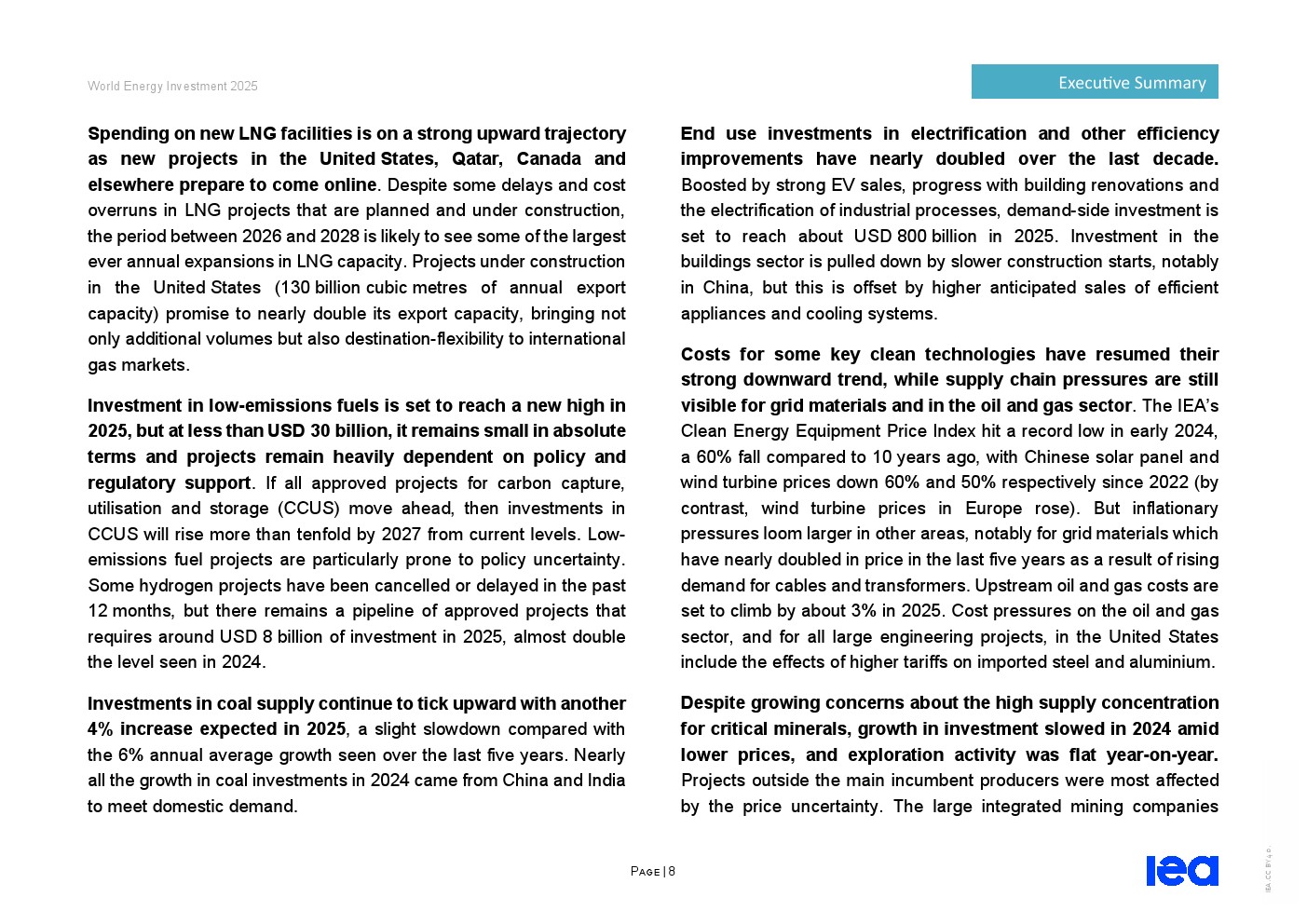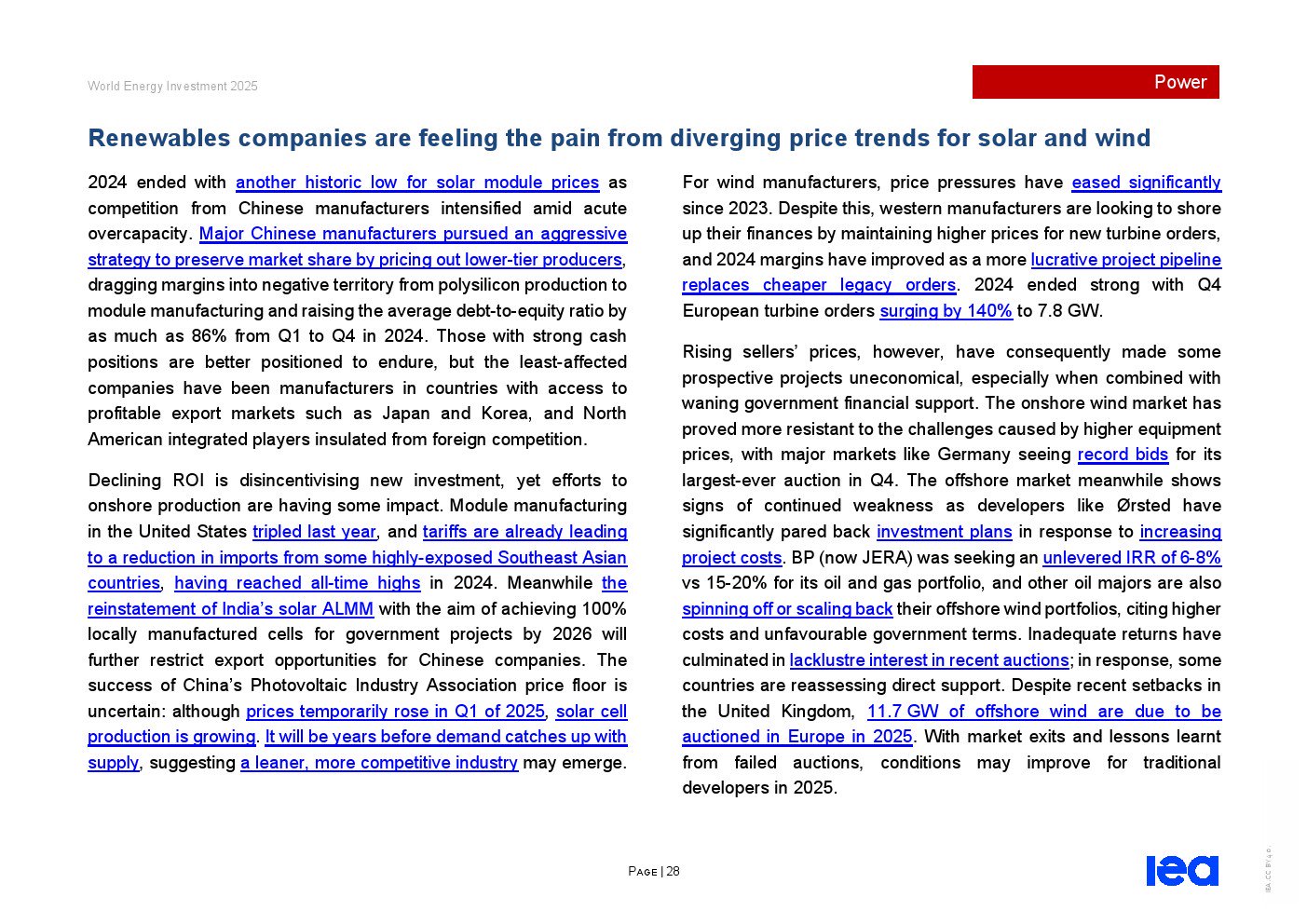 部分关键清洁技术成本重启快速下降趋势,但电网材料和油气行业仍面临供应链压力。