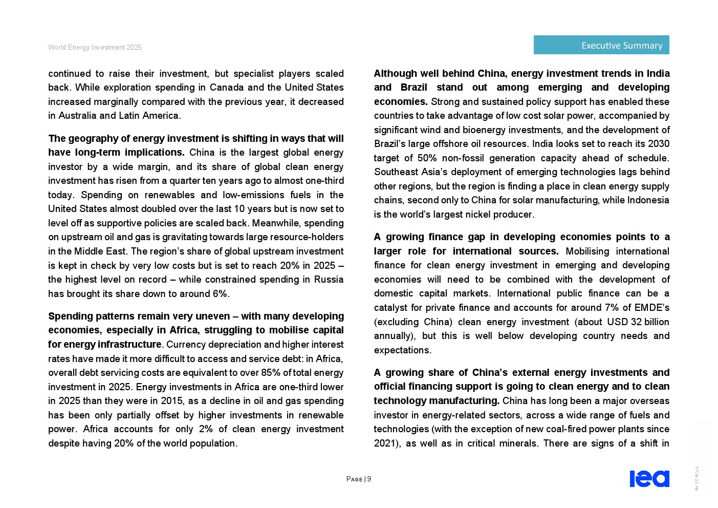 投资分布极不均衡——许多发展中经济体(特别是非洲国家)仍难以筹措能源基建资金。