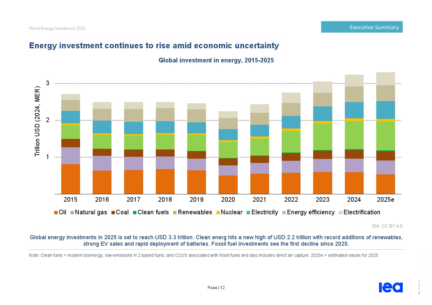 尽管地缘政治紧张局势加剧且经济前景不明朗,2025年能源行业资本投入将增至3.3万亿美元,实际较2024年增长2%。