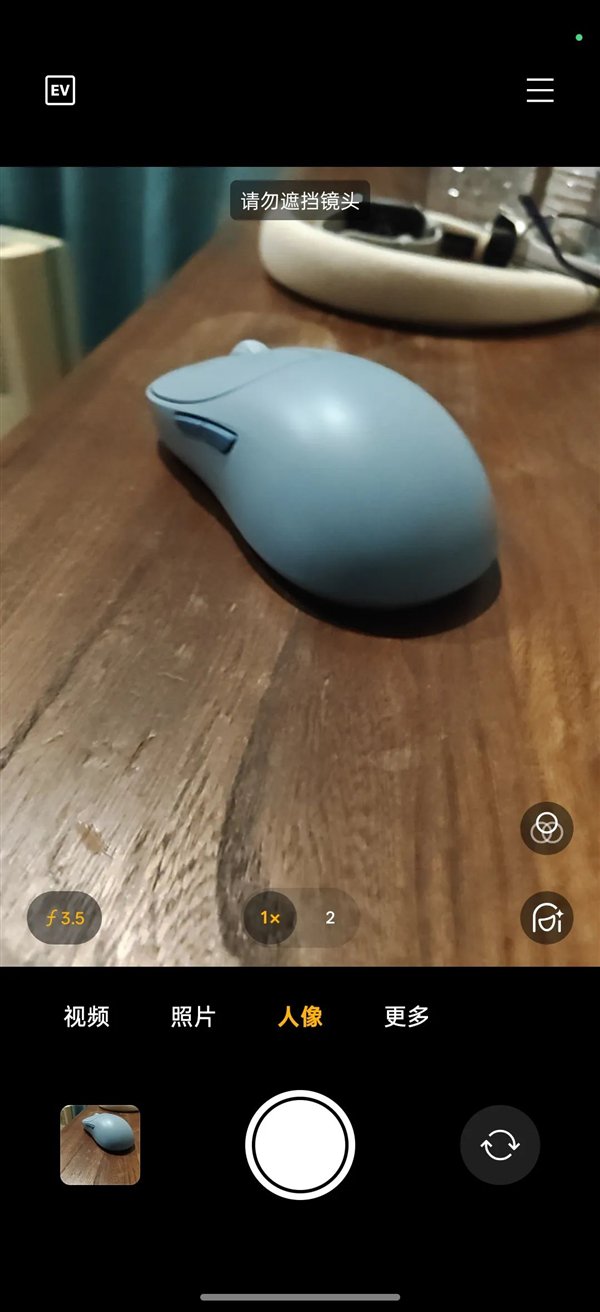 果不其然,打开人像模式后遮住这个小镜头,相机会提示 “ 请勿遮挡镜头 ” 。