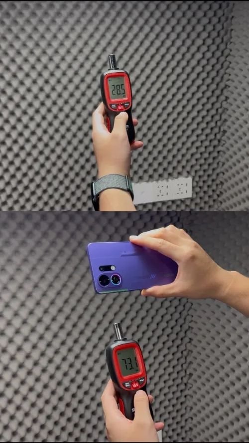 测试的过程中还有一点让托尼非常在意,就是这风扇的声儿有点儿大,至少比隔壁红魔手机的风扇要大。拉到隔音房里测了一下分贝,底噪 28.5db 的情况下,风扇全开的分贝能达到 73.1 。