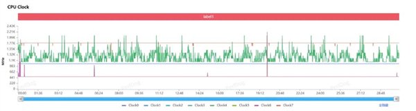 我们又拉了一下测试中的 CPU 频率,看看 CPU 有没有在开风扇的情况下做更激进的调度 —— 结果是并没有。