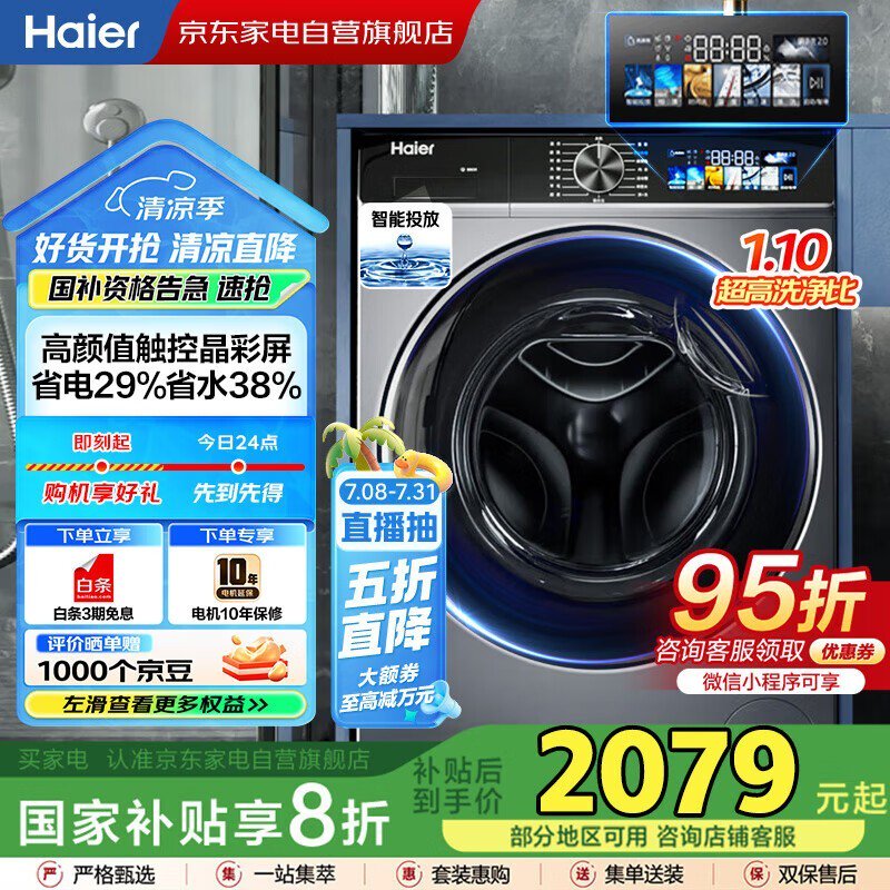 海尔10公斤滚筒洗衣机,京东活动价1975元