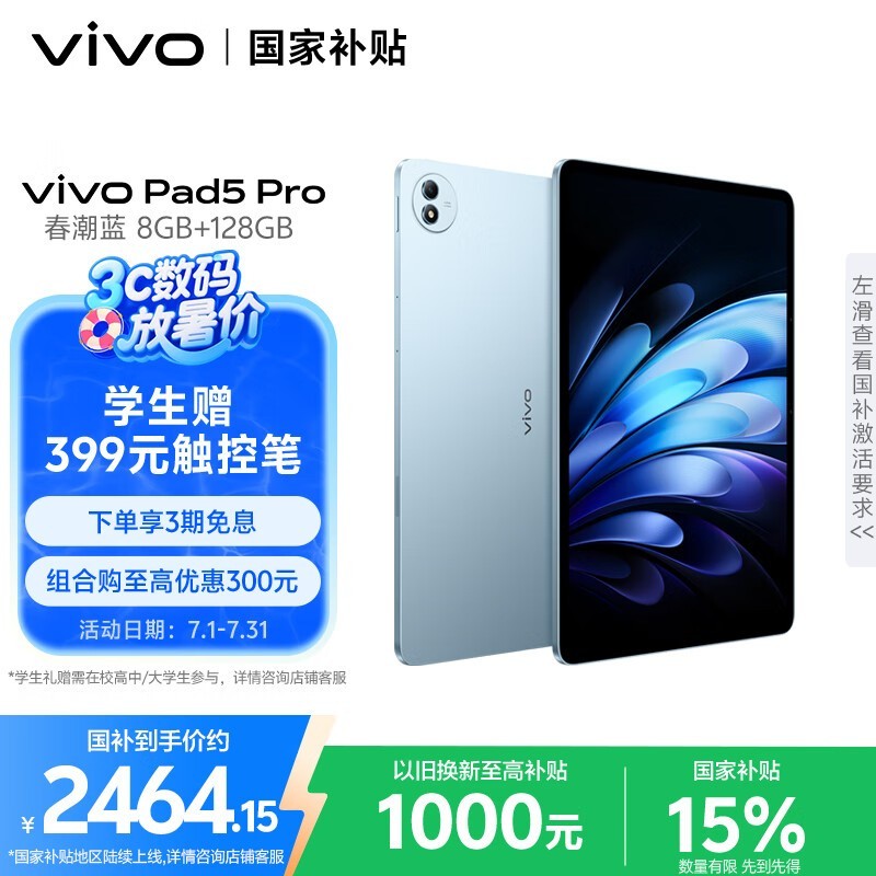 vivo Pad5 Pro平板电脑京东优惠,2464元可入手