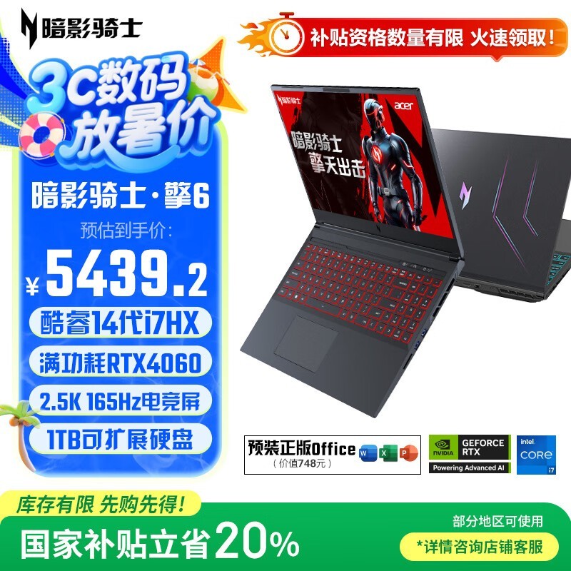 宏碁新暗影骑士·擎6游戏本京东优惠价5356元
