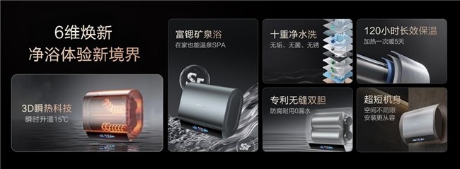 为守护用户健康,海信3D速热电热水器DS11Ultra搭载“十重净滤”系统,构建从源头过滤杂质、高温灭菌到全水路抑菌的严密防护网。同时,其专利无缝双胆与终身免换三镁棒技术,更是从根源解决水垢锈蚀,为用户带来了真正无垢、无菌、无锈、免维护的极净水质。此外,海信3D速热电热水器DS11Ultra更升级沐浴体验,内置锶模块,洗浴中可持续释放0.2mg/L锶离子与锌离子,其小分子易渗透至皮肤基底层,有助于提升肌肤抗氧化能力,舒缓敏弱肌,为用户带来带来温泉级“矿泉养肤”体验。