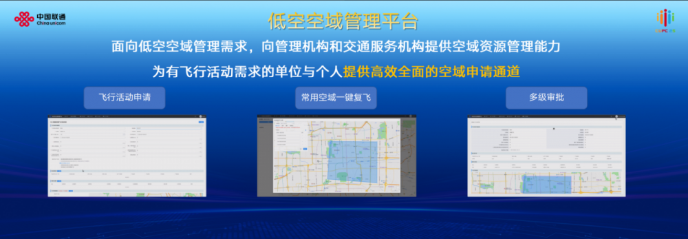 杨海明提到,中国联通三大核心低空平台产品包含低空安全监管平台、低空空域管理平台和智慧低空应用平台,分别围绕安全监管、空域管理和低空应用,构建起对低空安全的坚实保障以及低空资源的精细化管控和智能化运营能力。
