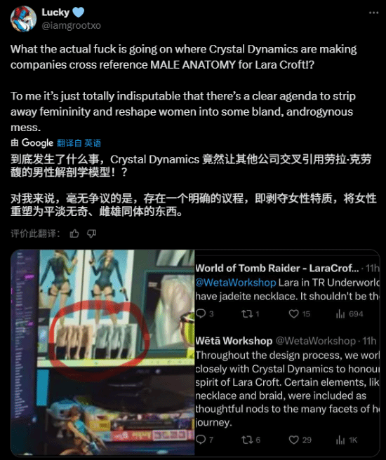 推主iamgrootxo则发现,水晶动力竟然允许合作公司用牢大的男性解剖学模型,剥夺了女性的特征,把女性变成平平无奇的雌雄同体人。