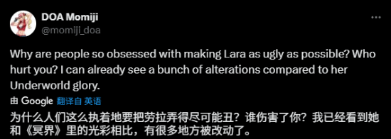 他认为雕像是故意把劳拉做丑,有很多地方被改动。