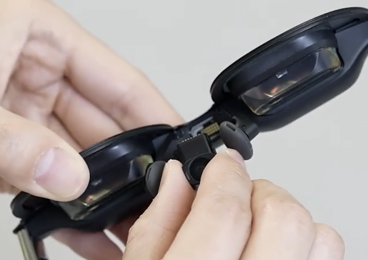 鼻托的部分支持摄像头组件的插拔,让眼镜拥有 1200 万像素的摄像头,能拍照片也能拍视频,还能进一步让眼镜支持 6DoF 的悬停,将现实的画面定在一个地方,用户可以走近画面仔细观察。